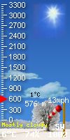 Aerisweather forecast: Mostly Cloudy, Showers. Chance of precipitation 100%. High: 11.9°C. Wind SE 28->44 mph. rain ≈ 3.0mm. Local station forecast:Increasing clouds and cooler. precipitation possible within 6 hrs. windy with possible wind shift to the w, nw, or n.