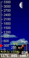 Aerisweather forecast: Mostly Cloudy, Showers. Chance of precipitation 100%. High: 11.6°C. Wind SSW 13->34 mph. rain ≈ 1.5mm. Local station forecast:Increasing clouds with little temp. change.